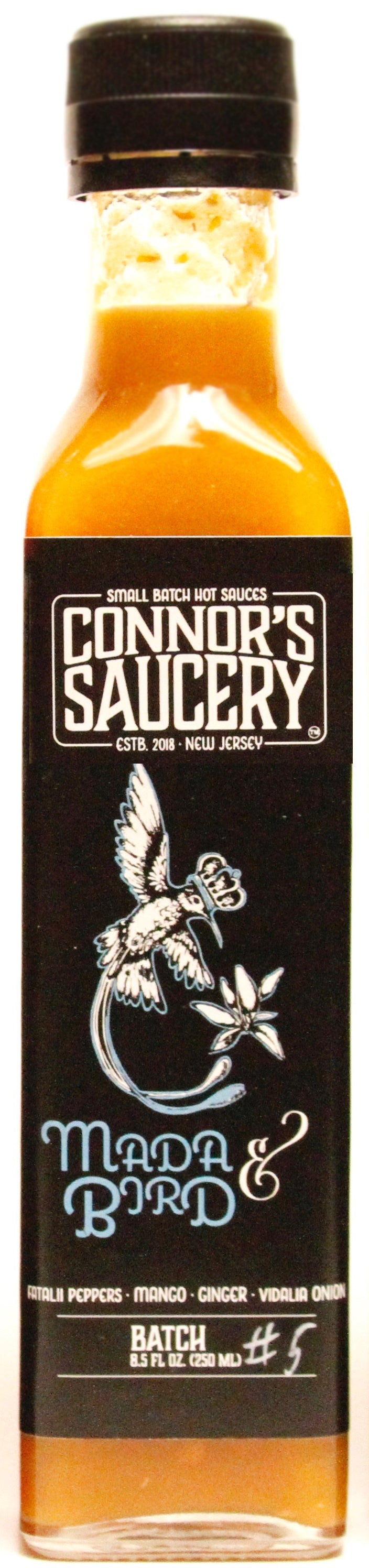 Infused with intense Caribbean style flavors and plenty of heat, Mada Bird is loaded with organic Fatalli peppers specifically grown for Connor's Saucery. The mango and ginger merge beautifully and balance out the fire of the peppers.